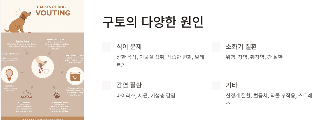• 동반 증상: 설사, 침울, 식욕 부진, 복통, 탈수 등이 동반될 수 있습니다.