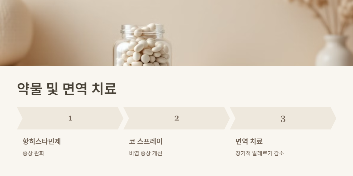 - 약물 치료: 항히스타민제, 코 스프레이, 눈약 등을 사용하여 알레르기 증상을 완화할 수 있습니다.
