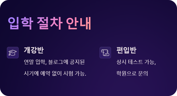 • 편입 반: 입반 테스트는 상시 가능
