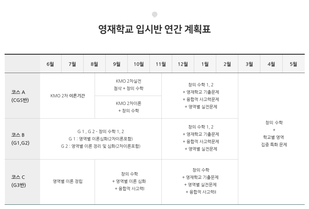 오늘은 영재학교와 과학고 대비 수학학원의 커리큘럼을 소개해 드렸어요.