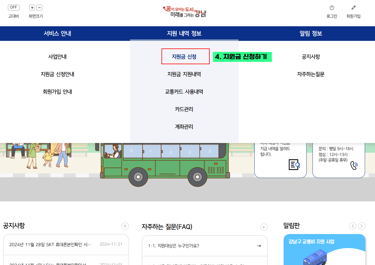 강남구 교통비 지원 포털 회원 가입과 신청 방법