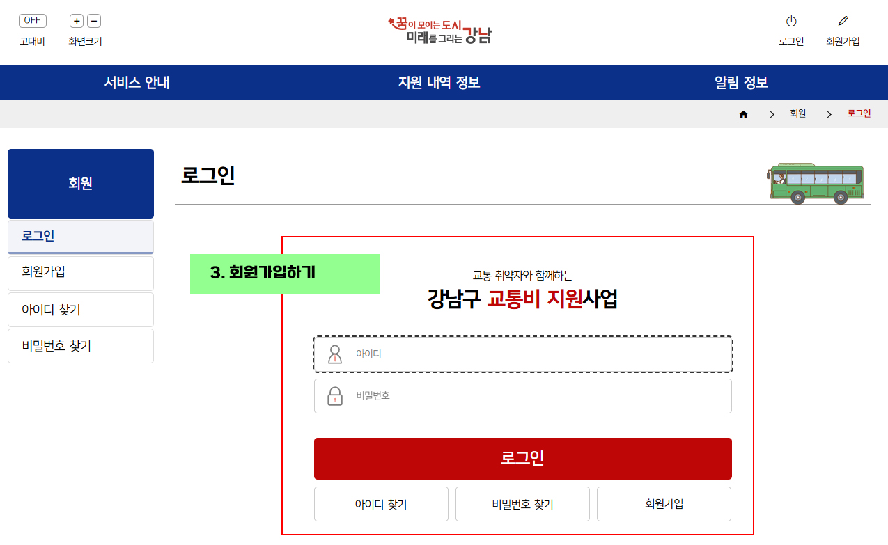 강남구 교통비 지원 포털 회원 가입과 신청 방법