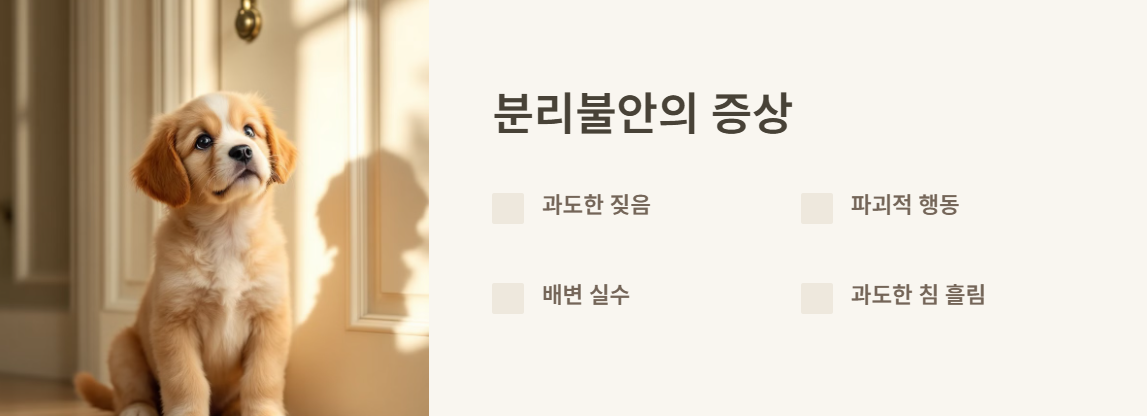 - 강아지는 보호자의 행동을 보고 외출을 예상하고 불안해할 수 있습니다.