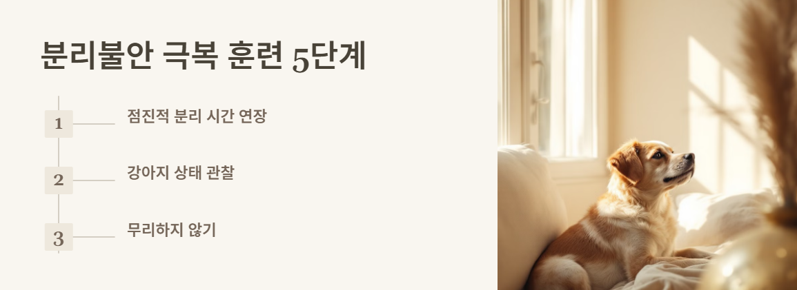 강아지 분리불안 극복 훈련은 강아지의 불안감을 줄이고 혼자 있는 것에 익숙해지도록 돕는 것을 목표로 합니다. 단계별 훈련을 통해 강아지가 점진적으로 분리불안을 극복하도록 도와주세요.